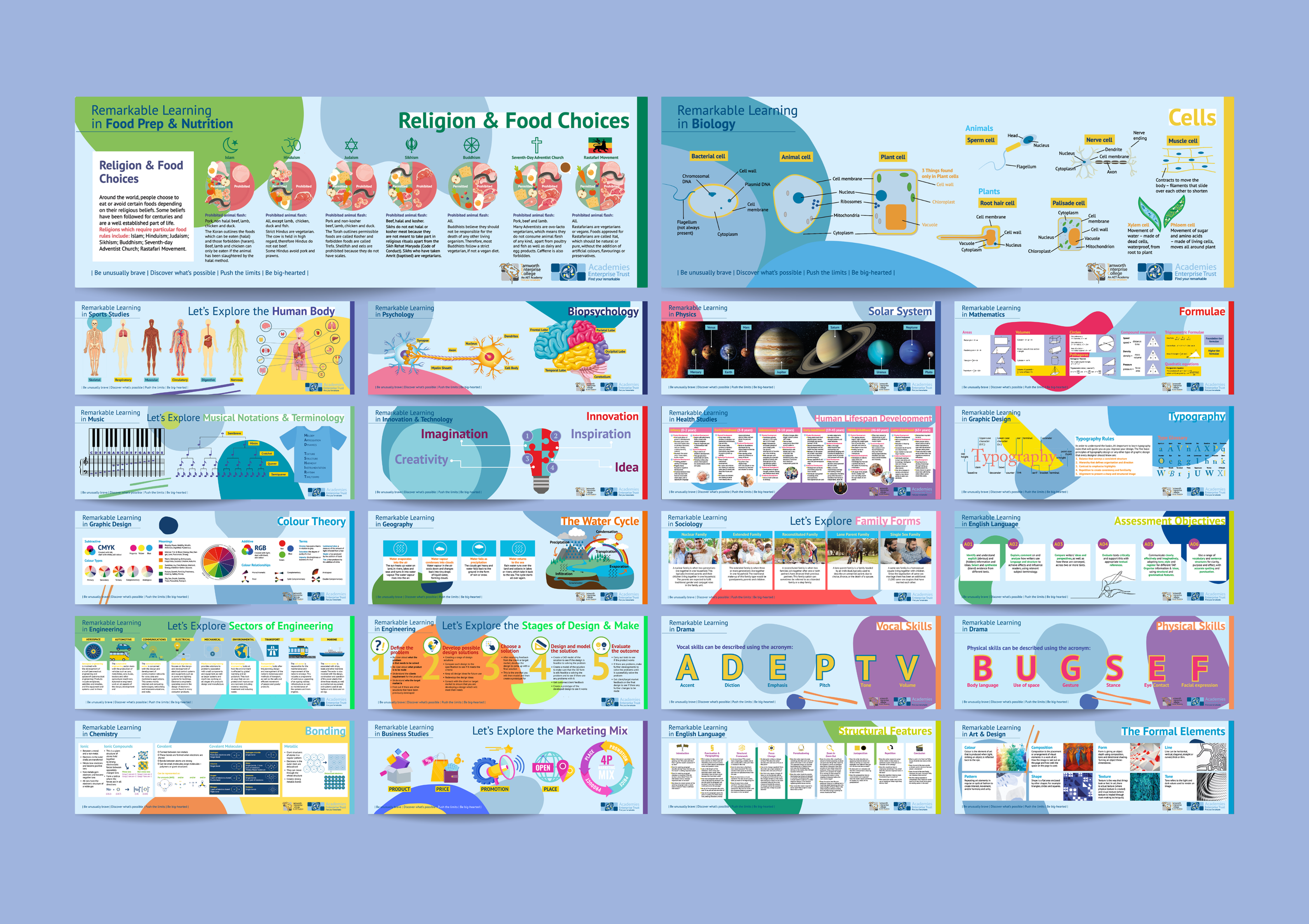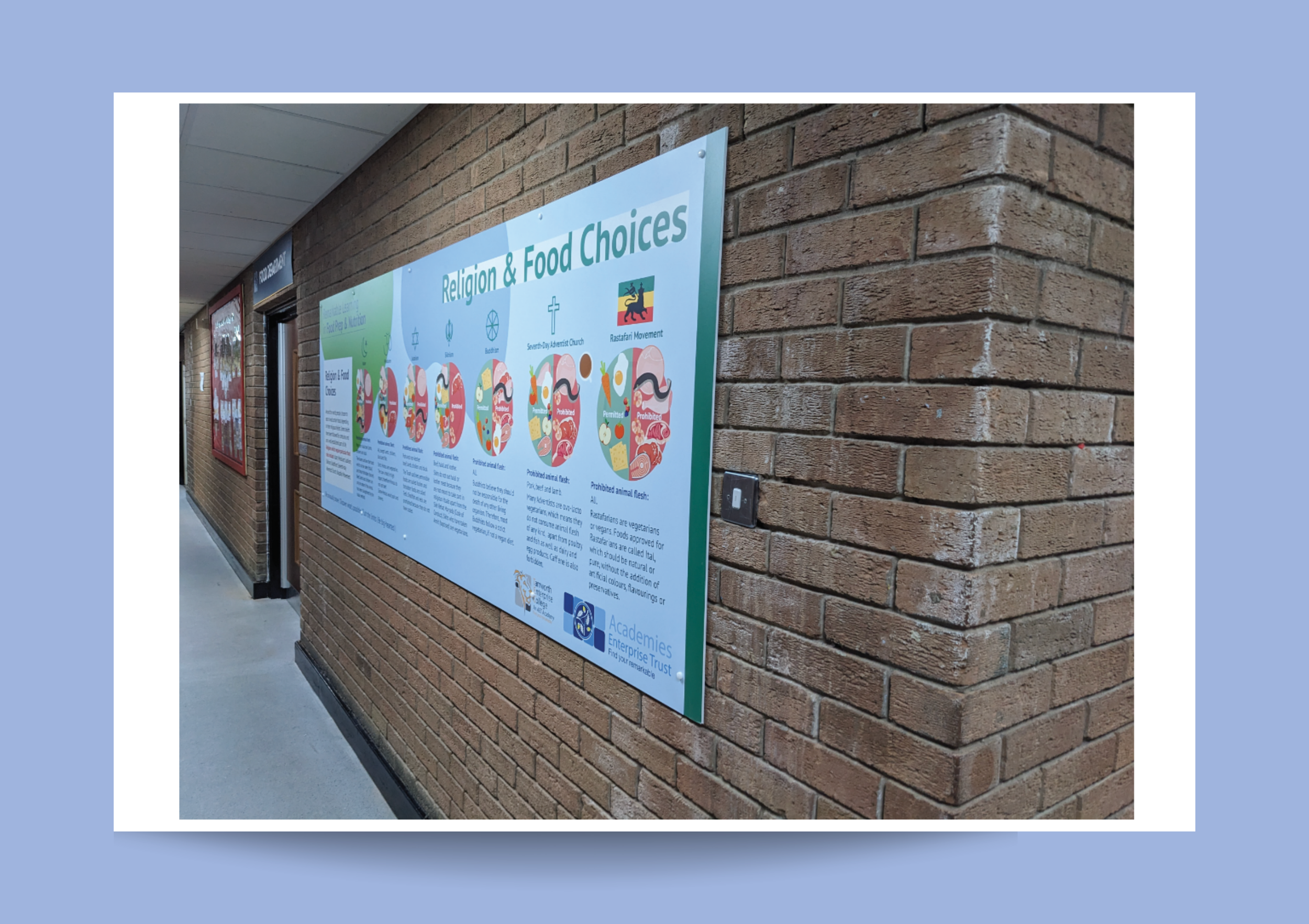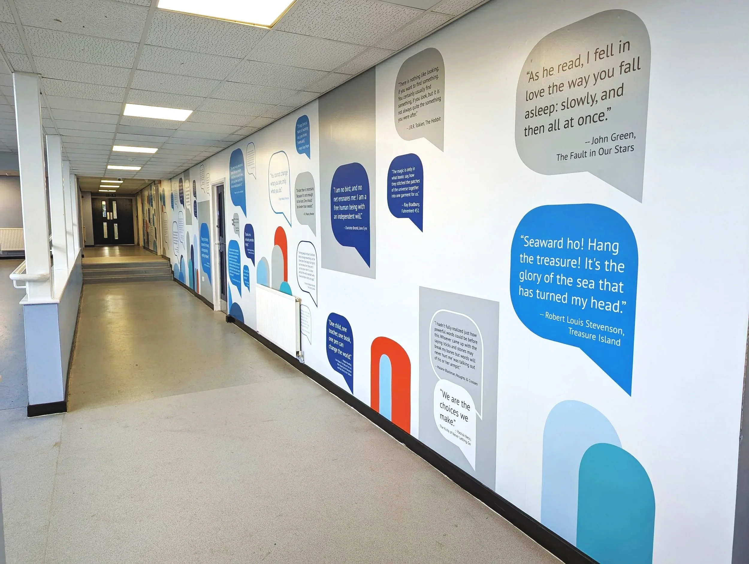 The Challenge: School estates can sometimes look old and uninspiring, affecting the students, staff, and carers that step foot there. When trying to change student outcomes, school culture plays a huge part. I needed to create a design that inspires and uplifts busy areas. Space can be narrow and dark, budgets are minimal, so design must factor aging well.